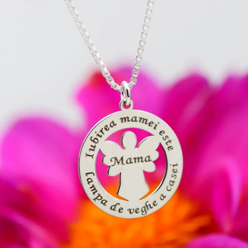 Lanțișorul cu mesajul „Iubirea mamei este lampa de veghe a casei” – un cadou plin de suflet pentru cea care veghează mereu asupra noastră.