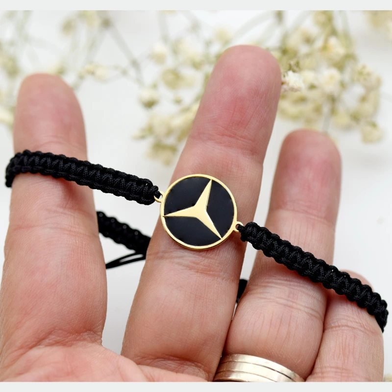Brățară reglabilă din argint 925 suflat cu aur, cu simbolul Mercedes-Benz. Bijuterie elegantă pentru iubitorii de mașini și pasionații de stil.
