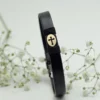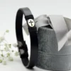 Bratara din piele naturala negra link decupaj Cruce, cruciulita – Aur 14k