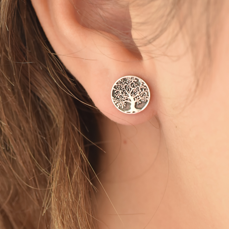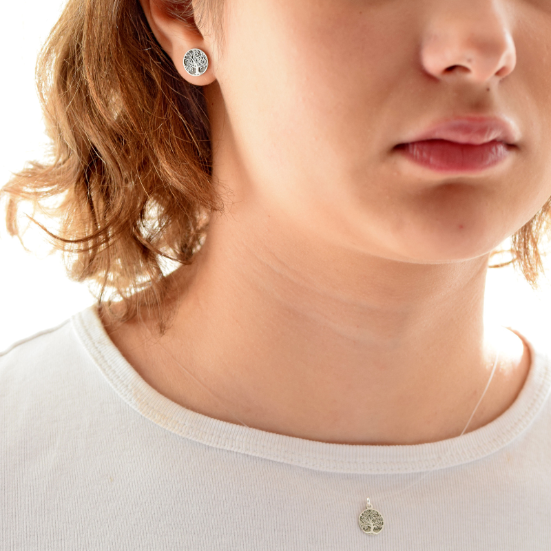Set bijuterii cu Cercei și Lănțișor fir transparent Simbol Copacul Vietii – Argint 925