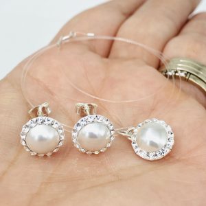Set Swarovski Perle / Pearlescent White & Crystal / Argint 925