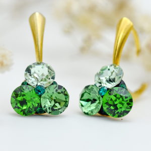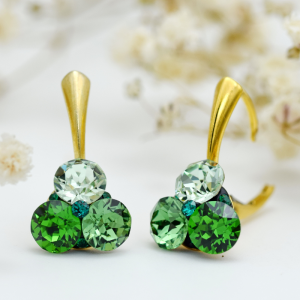 Cercei Swarovski – Trio Chaton Flower Green – Argint 925 placat cu aur