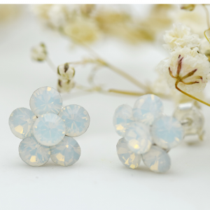 Cercei Swarosvki – Floricele / Chaton Flower White Opal – Argint 925
