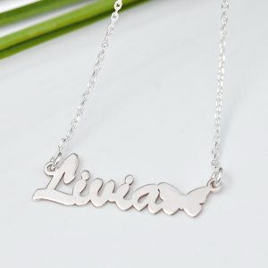 Lantisor/Colier Personalizat- Nume simbol fluturas /Argint 925